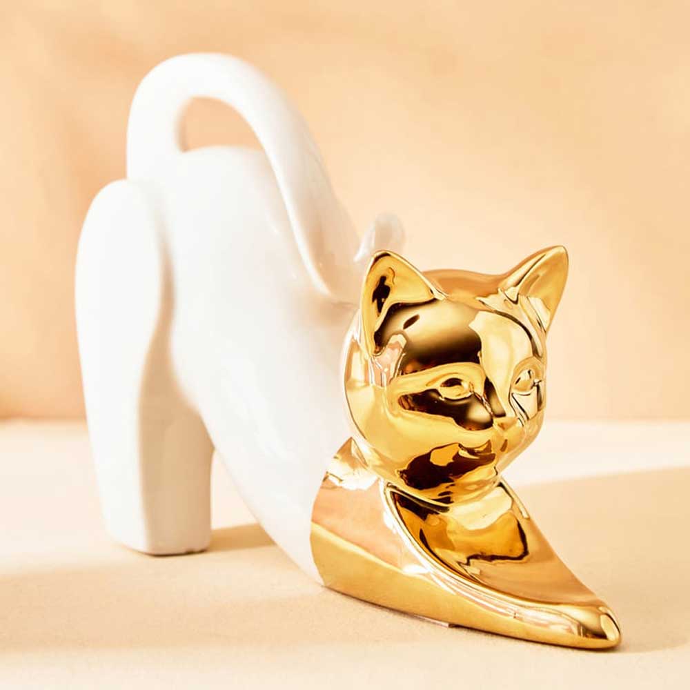 Celebrate your cat passion with elegant golden décor. These pieces bring joy and sophistication together. Perfect for cat lovers who also appreciate luxury and elegance.