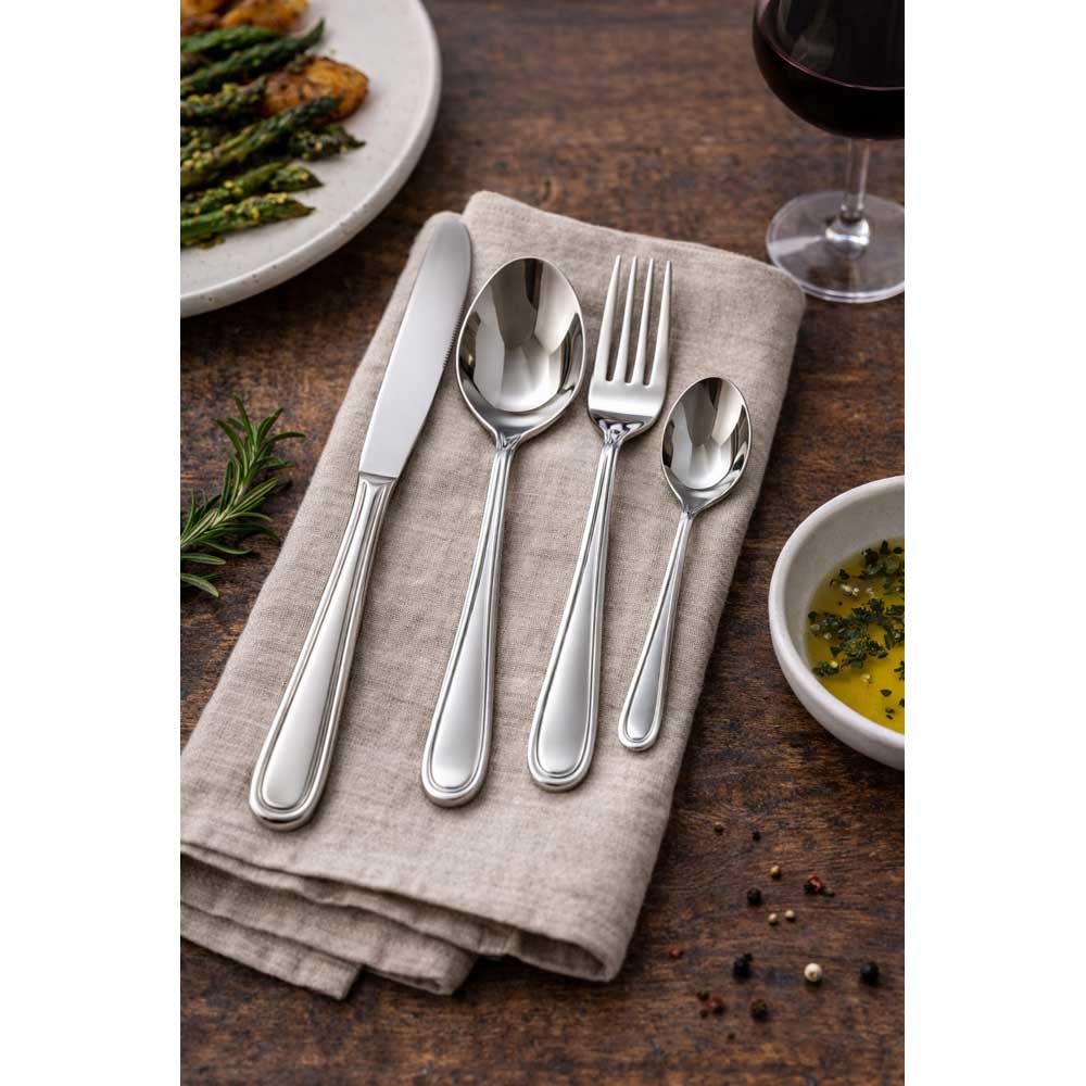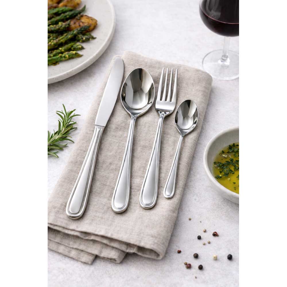 The distinctive border pattern on each piece adds visual interest without overwhelming the clean lines of the utensil. This thoughtful design detail speaks to the craftsmanship and attention to detail that went into creating this collection. The balanced combination of tradition and contemporary style makes these pieces work with virtually any table setting.