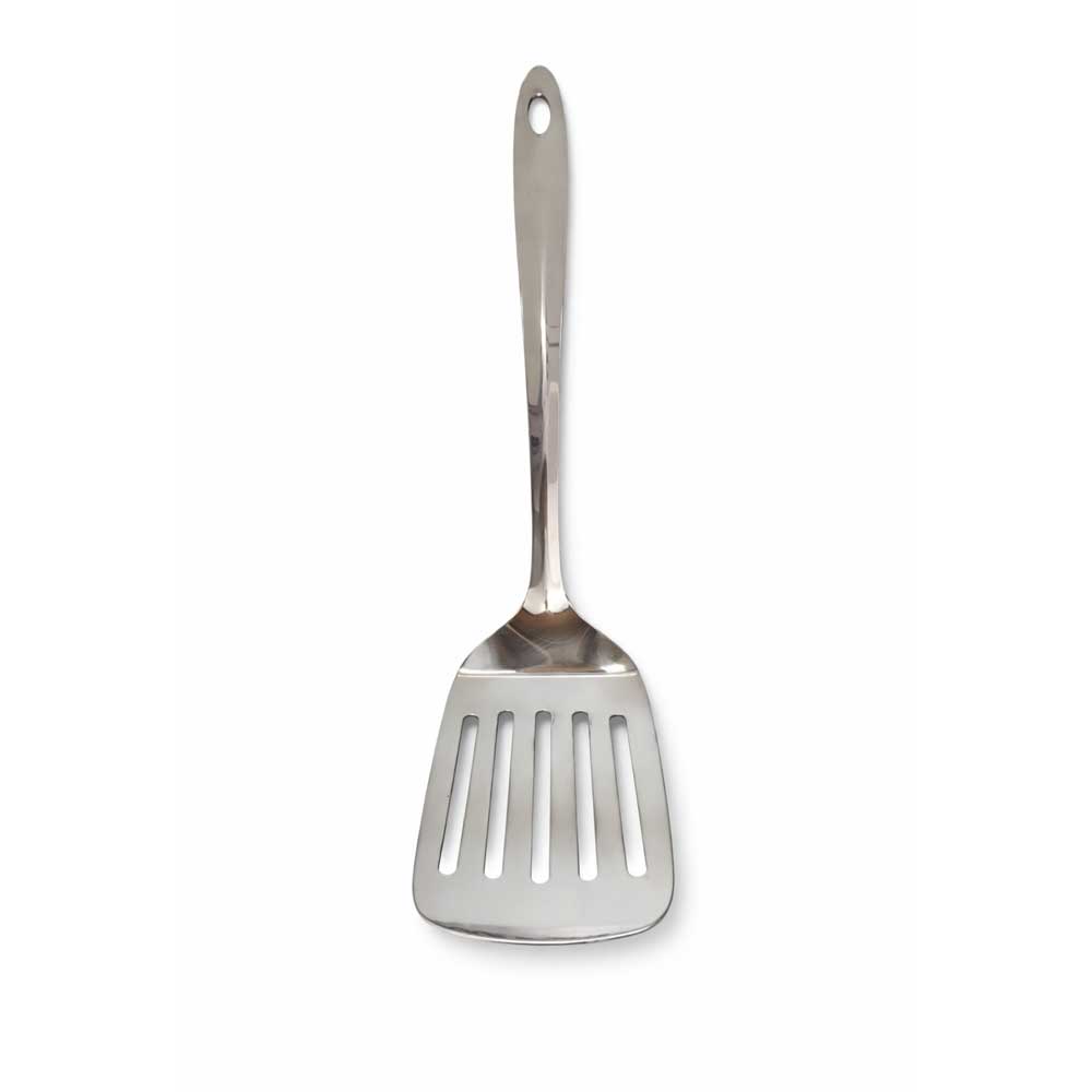 Quality cooking utensils improve your cooking technique and results. Our turner's design handles various foods from delicate eggs to vegetables effectively. The pearl finish adds sophistication to your cooking tools.