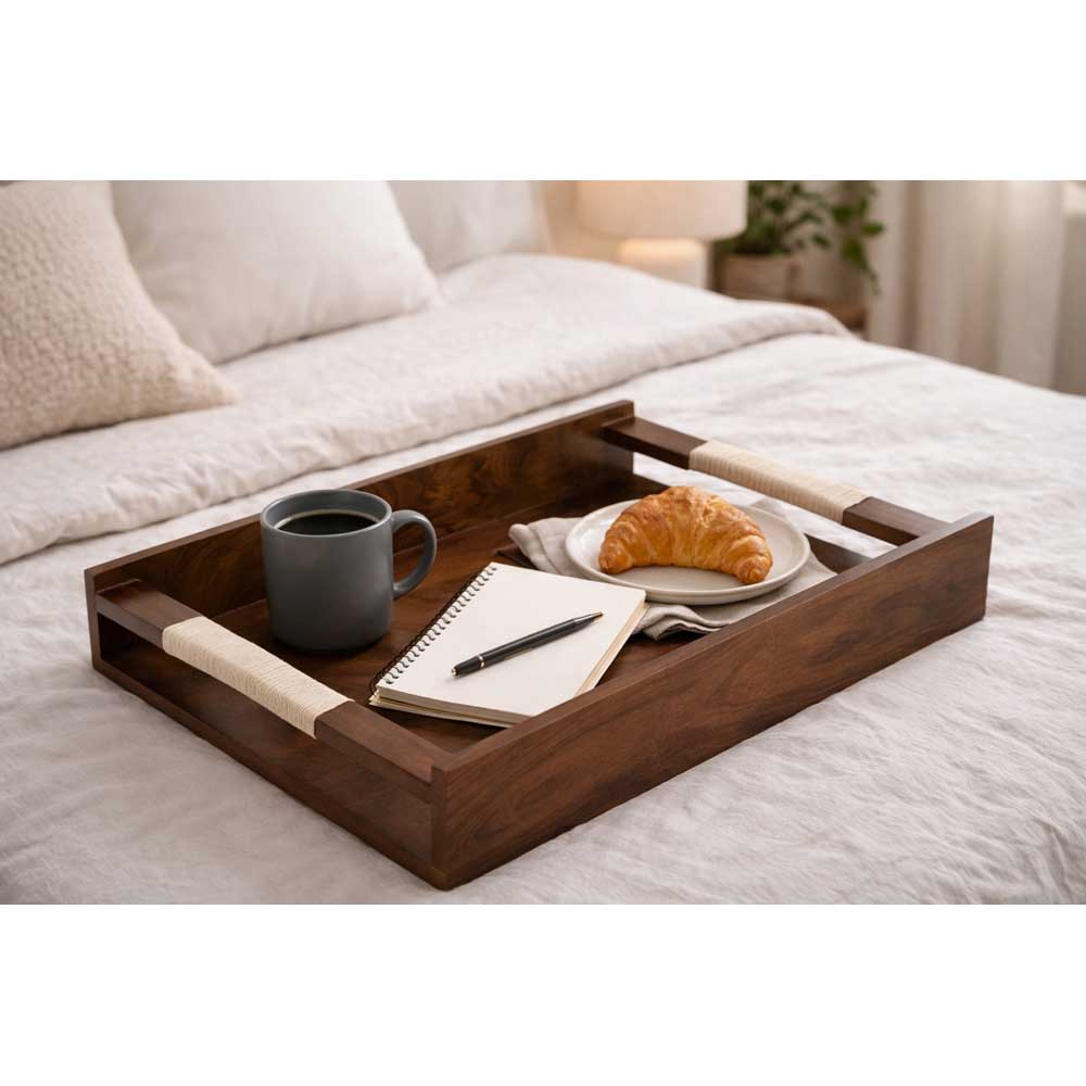Finish your wooden tray collection with this final option. These pieces become treasured entertaining essentials. Perfect for creating a comprehensive natural serving collection.